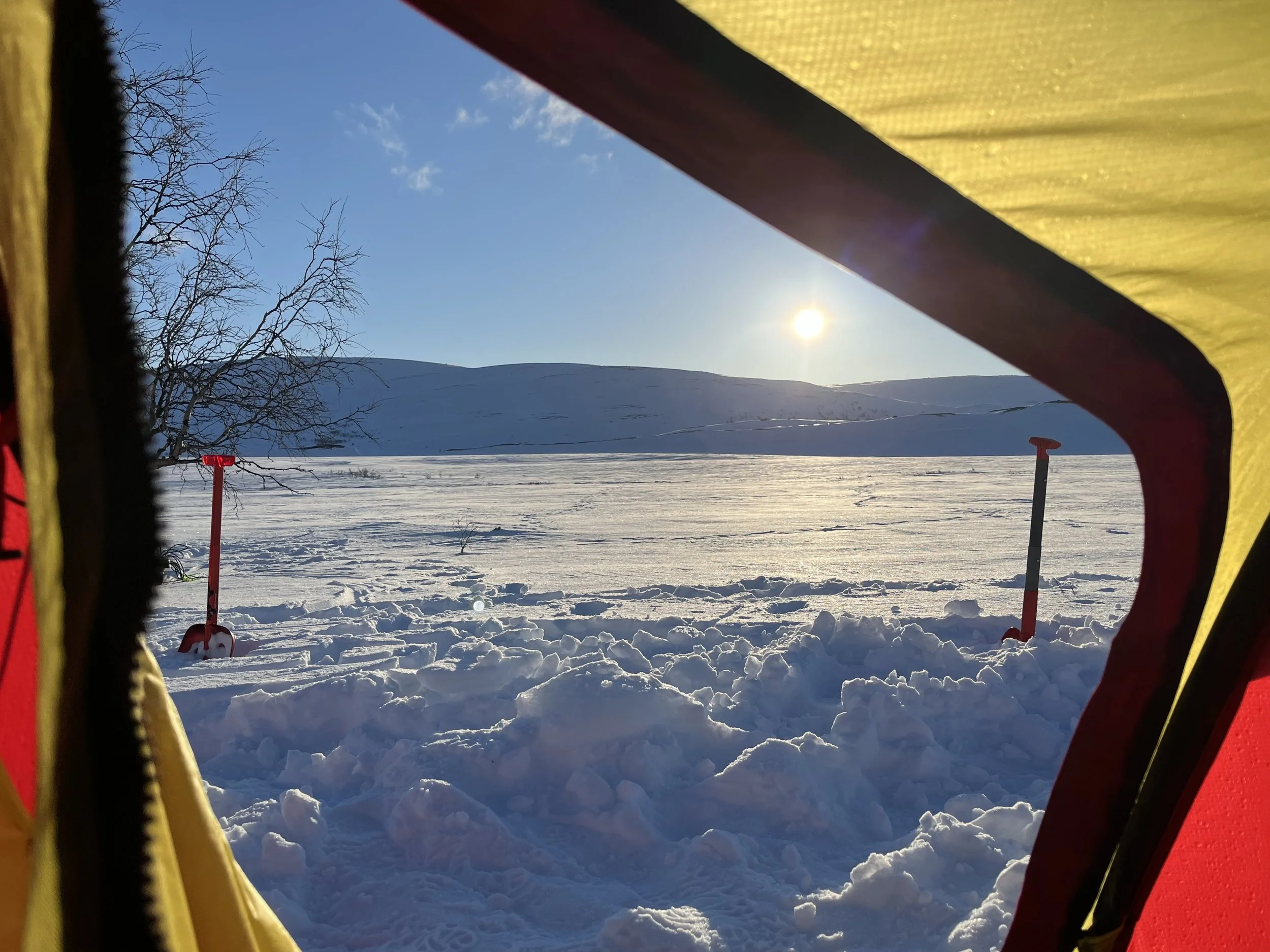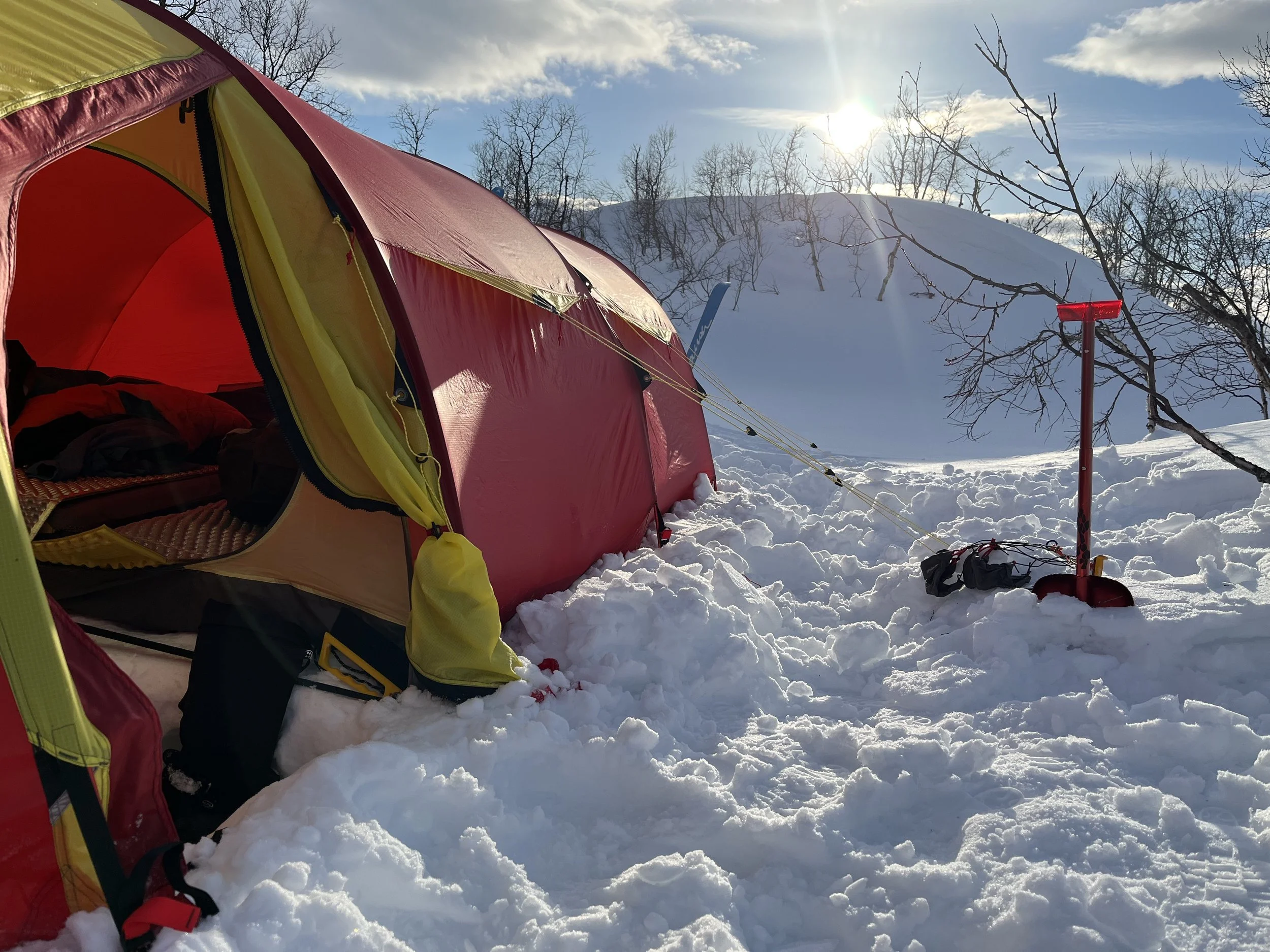 Sol på teltduken gjør at vi får tørket utstyr før vi pakker. Men her kunne vi egentlig bare blitt?
