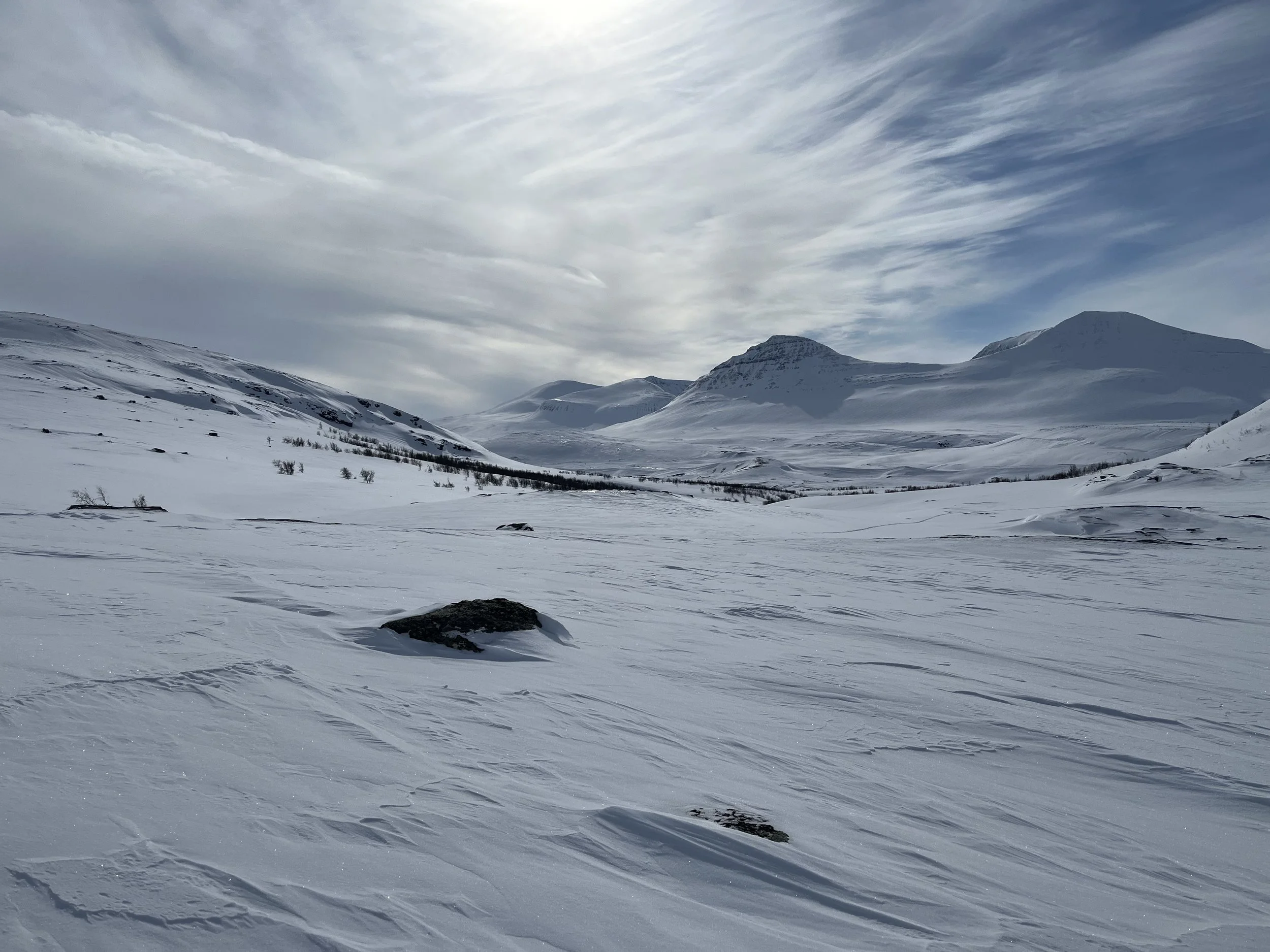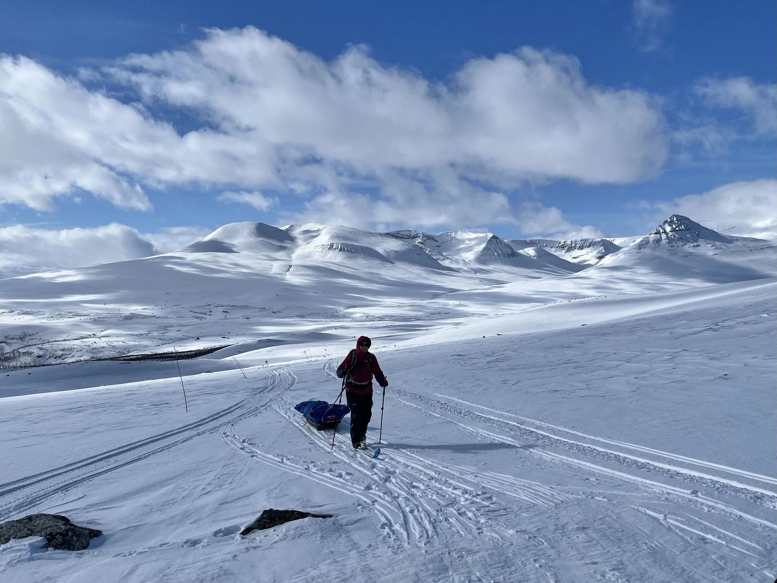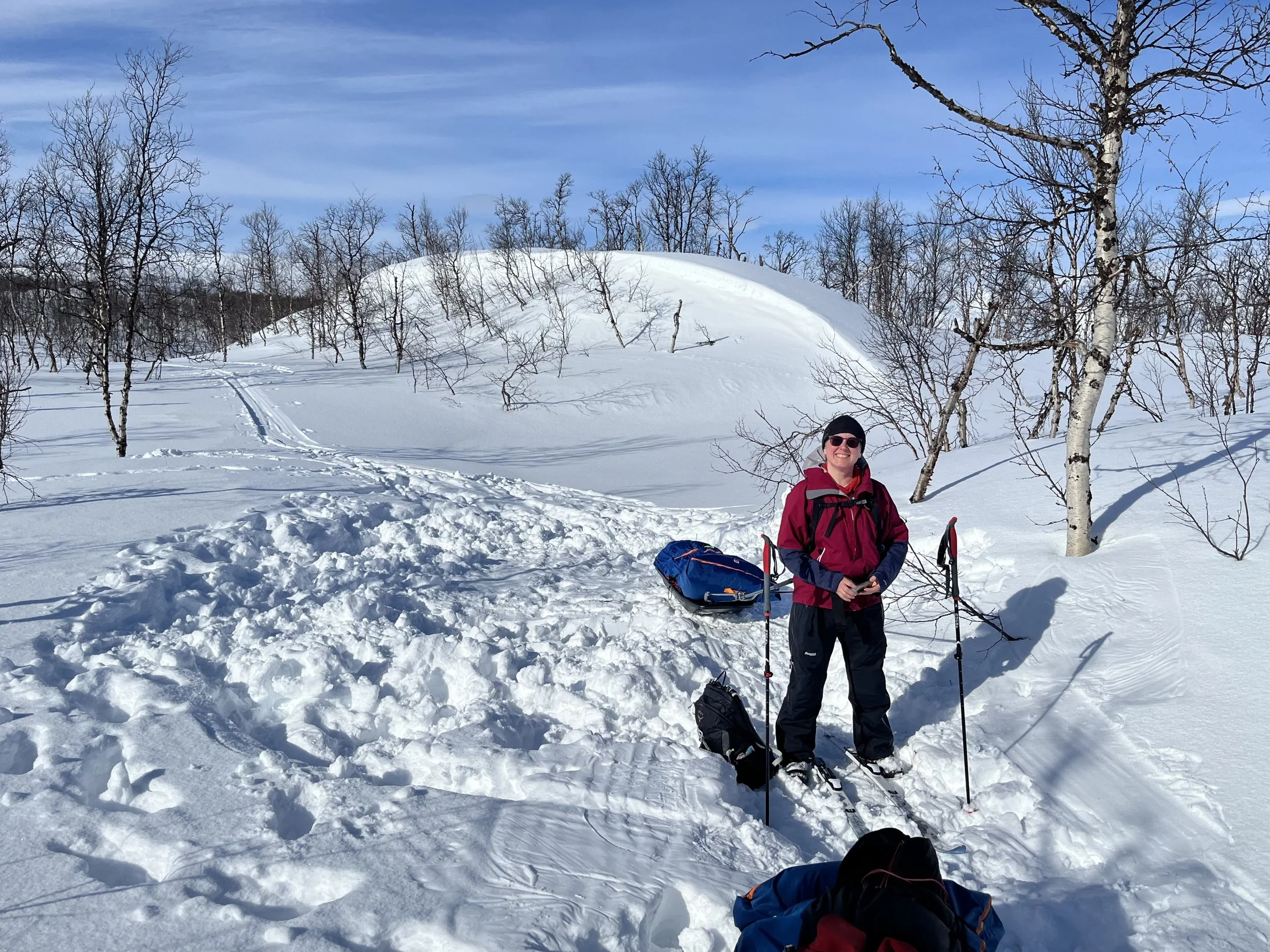 Etter en litt for inaktiv vinter (etter februars smittsomme luftveishistorie™) var det veldig bra å finne fram pulk, telt, klær, og mat, og sette kursen østover. Med dager til fri disposisjon, og ingen andre krav enn at vi skulle ha det bra og komme oss noen kilometer rundt i terrenget. Kunne vært artig å kjøre til Kilpis, og få gått trianglet Treriksrøysa-Gappo-Pältsa-Treriksrøysa. Med gode strekninger over islagt vann, fjellterreng og langstrakt viddemark.